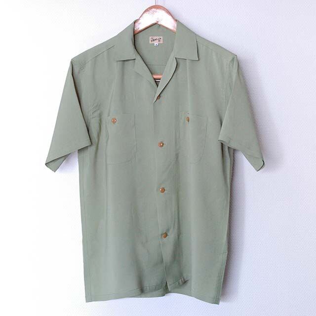 1940年代から20年程アメリカンカジュアルシーンで使用されたレーヨン素材。ハワイアンとボーリングシャツはレーヨンがマスト、パルプから合成したシルクタッチのデリケートな風合いに未了されます。(水洗いで着丈が5㎝短かくなります。)